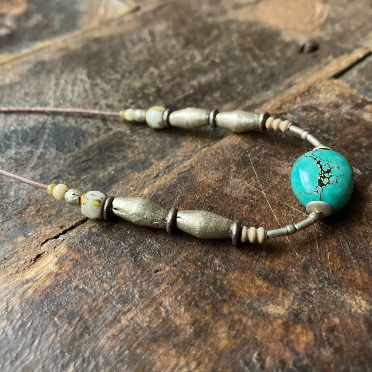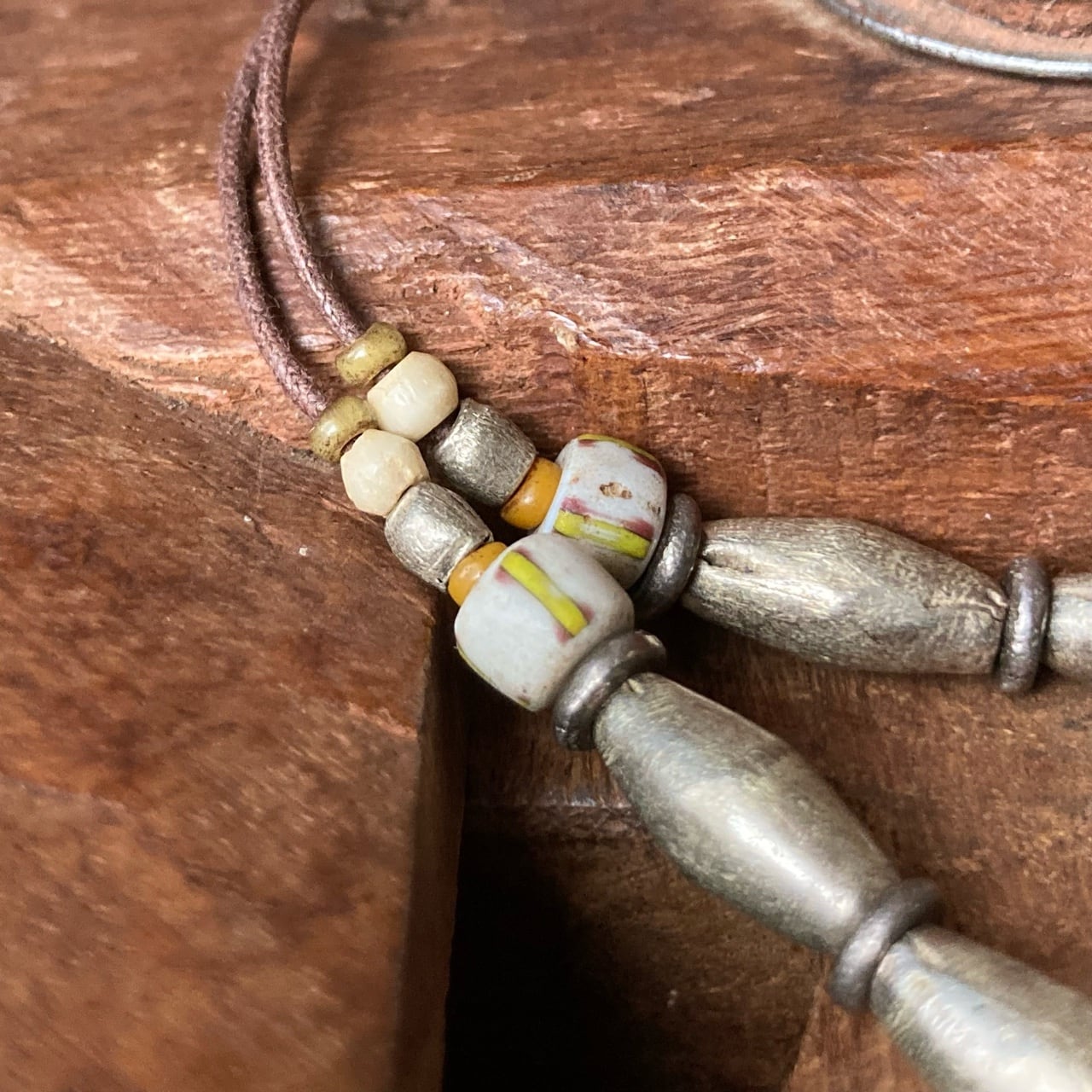 その上の銀色ビーズはエチオピアメタルビーズ